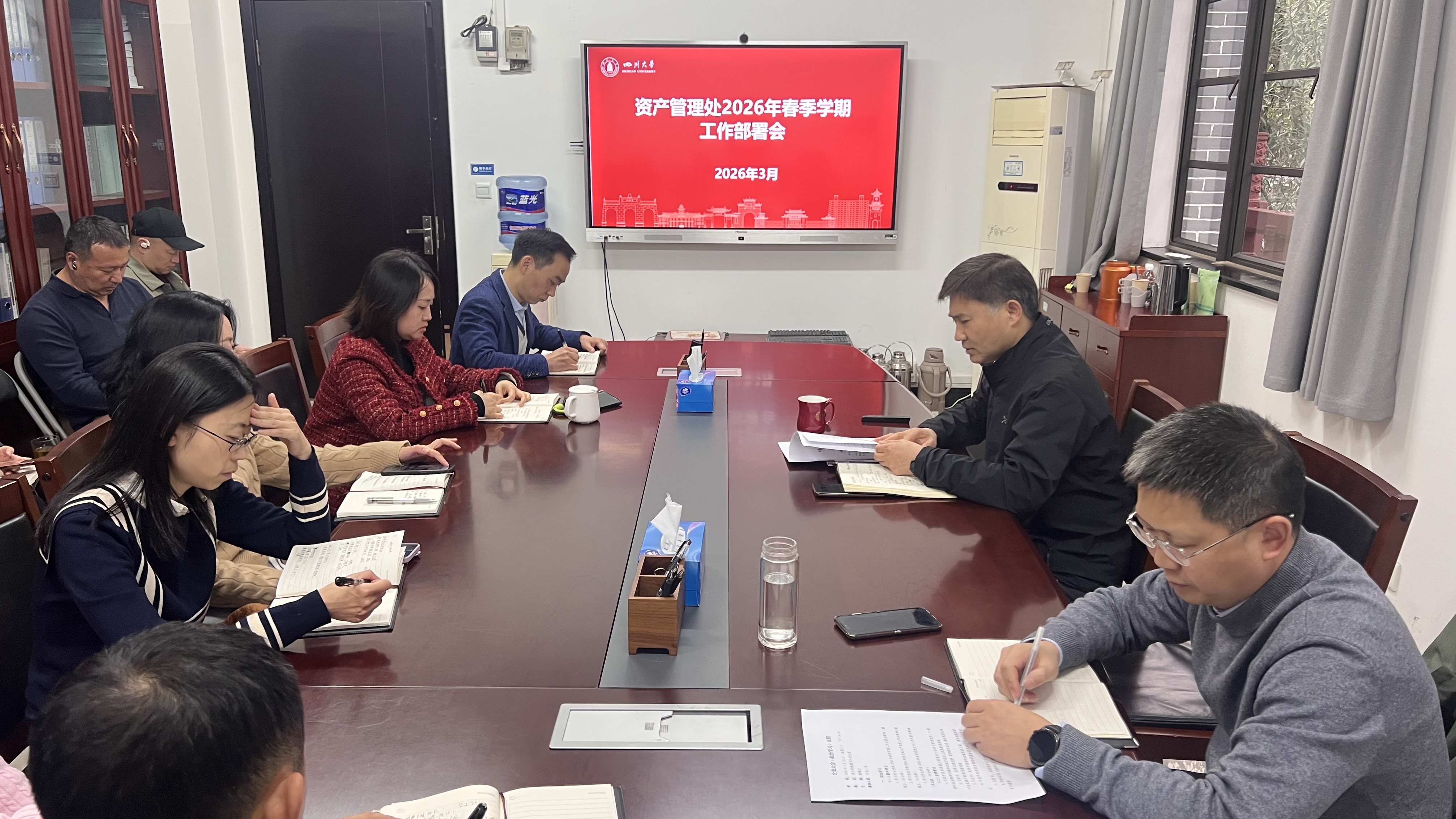近日,资产管理处召开2026年春季新学期工作部署会,会议由党支部书记、处长颜锦江主持,全处人员参会。